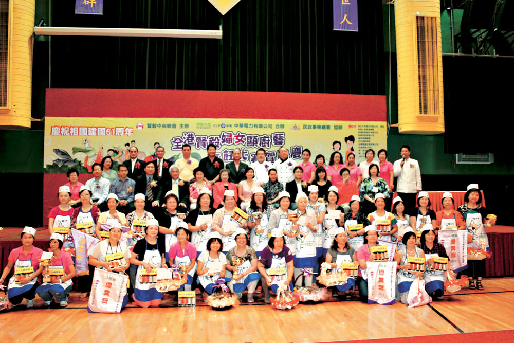 【本報訊】記者黃閩報道﹕日前,由賢毅中央聯會主辦,中華電力有限公司合辦,民政事務總署協辦的「慶祝祖國建國61周年 全港賢毅婦女顯廚藝 烹飪比賽賀國慶」活動於油麻地青年會綜合體育館舉行。是場活動得到了各界的大力支持,贊助單位包括淘化大同食品有限公司、裕滿人家飲食集團、美城飲食設計有限公司、稻香控股有限公司、福苑酒樓集團、彩年海鮮酒家、裕華國貨、朱嘉樂博士BBS、黎勤先生MH、鍾田先生等,逾五百人出席了活動。