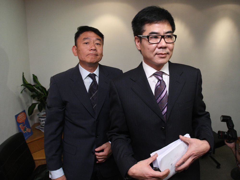 圖:永盛董事曾明輝(右)在律師林炳昌(左)陪同下到場\林雨燊攝