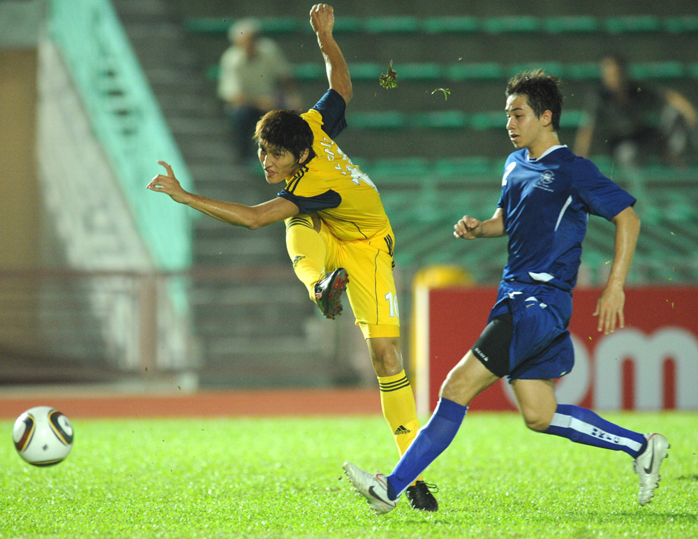 圖:天水圍前鋒李靈峰(左)為球隊射入關鍵一球\本報攝