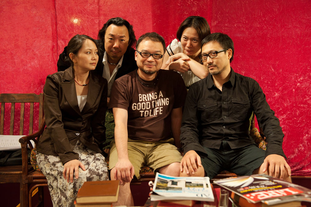 圖:《豆泥戰爭》台前幕後:演員彭杏英(前排左起)、導演司徒慧焯、演員潘燦良、演員高翰文(後排左起)及陳煦莉Keith\Hiro攝