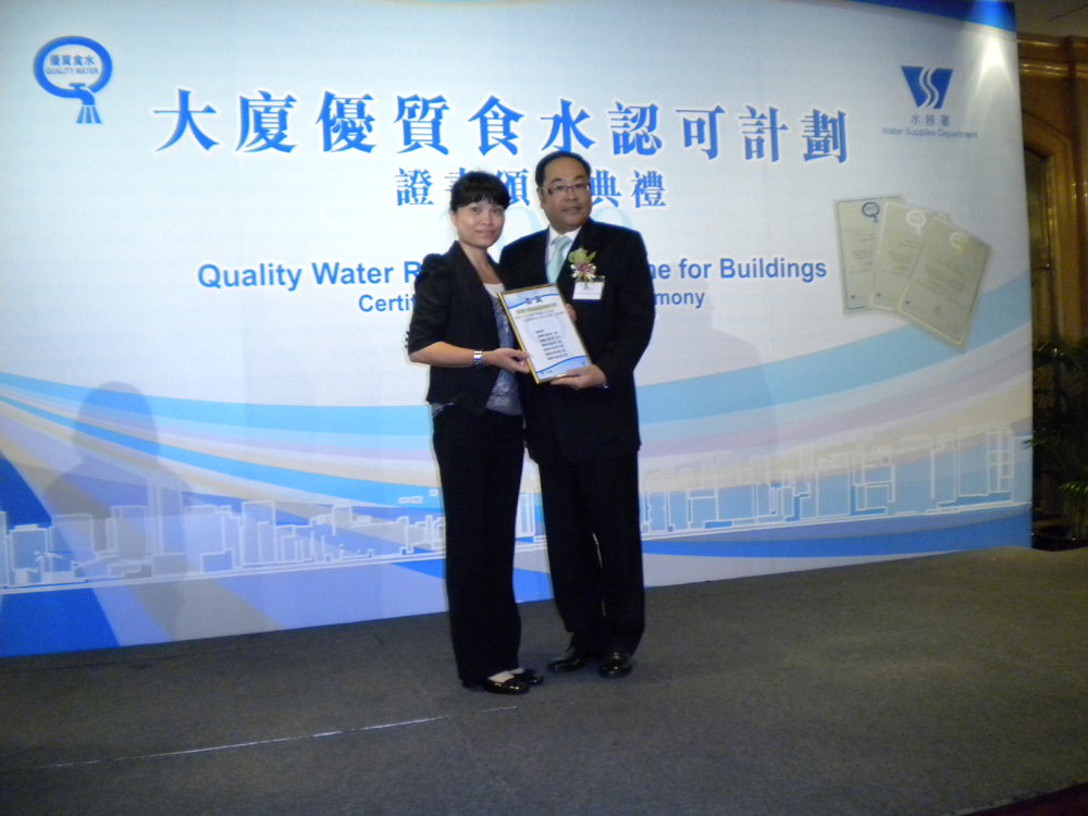 圖:水質事務諮詢委員會大廈水質工作小組主席陳尚仁(右)頒發證書予夏利文的代表