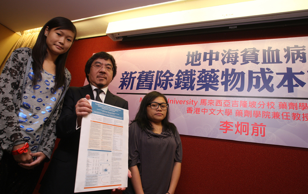 圖:研究報告指地拉羅司合乎成本效益。左起為地貧患者桐桐、李炯前、患者湘渝\本報攝