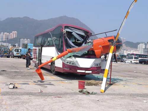 圖:直升機當日撞上旅遊巴,導致車頭損毀