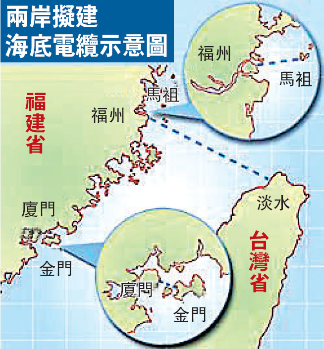 圖:雖然兩岸天空及海面早已「大三通」,但兩岸的「海底」卻還遲遲未通。台灣交通部日前宣布,開放兩岸可共同興建專用海纜,不必再繞經第三地。