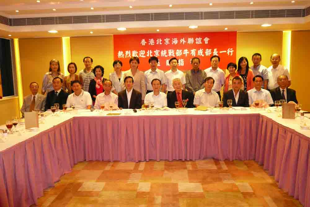 【本報訊】日前,香港北京海外聯誼會在銅鑼灣世貿中心38樓會所,設晚宴歡迎到港訪問的北京市委常委、統戰部部長牛有成一行。出席晚宴的北京來賓還有:北京市委統戰部副部長王文傑,北京市發展改革委員會委員洪繼元,北京市外辦副主任胡東,北京市工商聯副主席王克林,北京市委統戰部聯絡處處長林為民,北京市財政局辦公室副主任周明嬋;香港中聯辦秘書長楊建平,香港遼寧協聯會會長陳同壽,香港冀魯旅港同鄉會會長林樹田等嘉賓應邀出席。