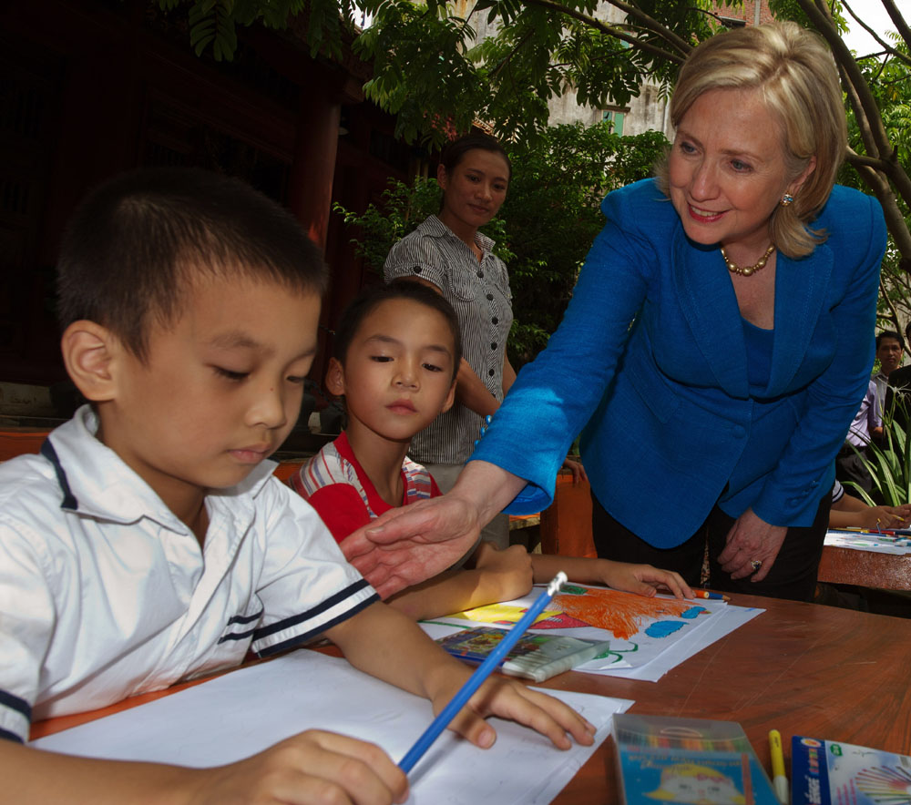 圖:美國國務卿希拉里今年7月在越南玉林地區看望一群孤兒