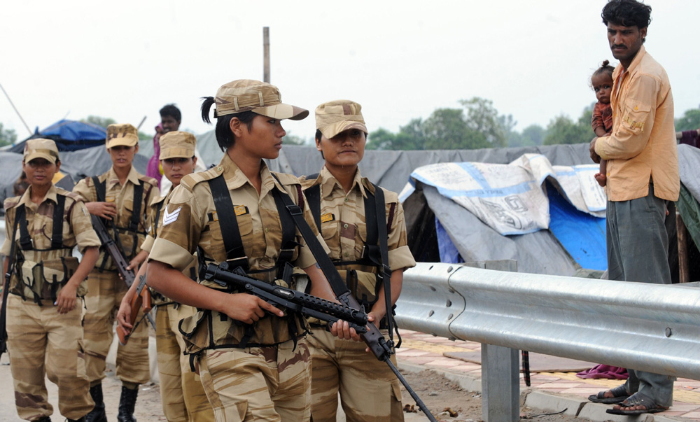 圖:印度警方在選手村附近加強巡邏,確保英聯邦運動會得以順利召開 法新社