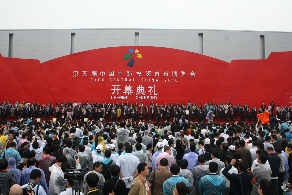 26日,第五屆中國中部投資貿易博覽會(簡稱中博會)在江西南昌隆重開幕。國務院副總理王岐山、香港特首曾蔭權、中國中部六省黨政主要領導等出席。香港五大商會、香港貿發局以及國內外眾多行業龍頭企業高管出席尋求商機。