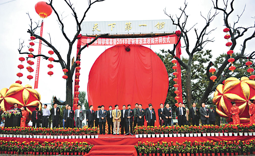 圖:遷西尚禾谷銅鑼揭幕暨2010年秋季板栗收購開秤儀式日前在尚禾谷京東板栗交易市場舉行