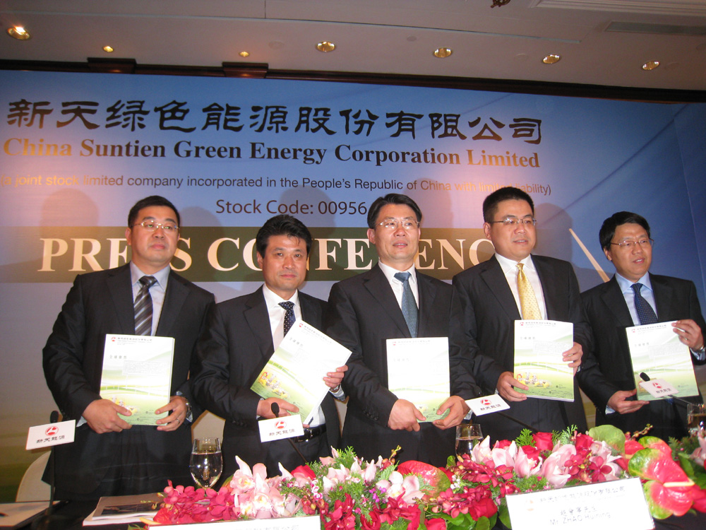 圖:左起:新天綠色能源天然氣業務財務經理劉濤、副總裁高慶餘、副董事長趙會寧、總裁曹欣、財務負責人馮春曉 本報攝