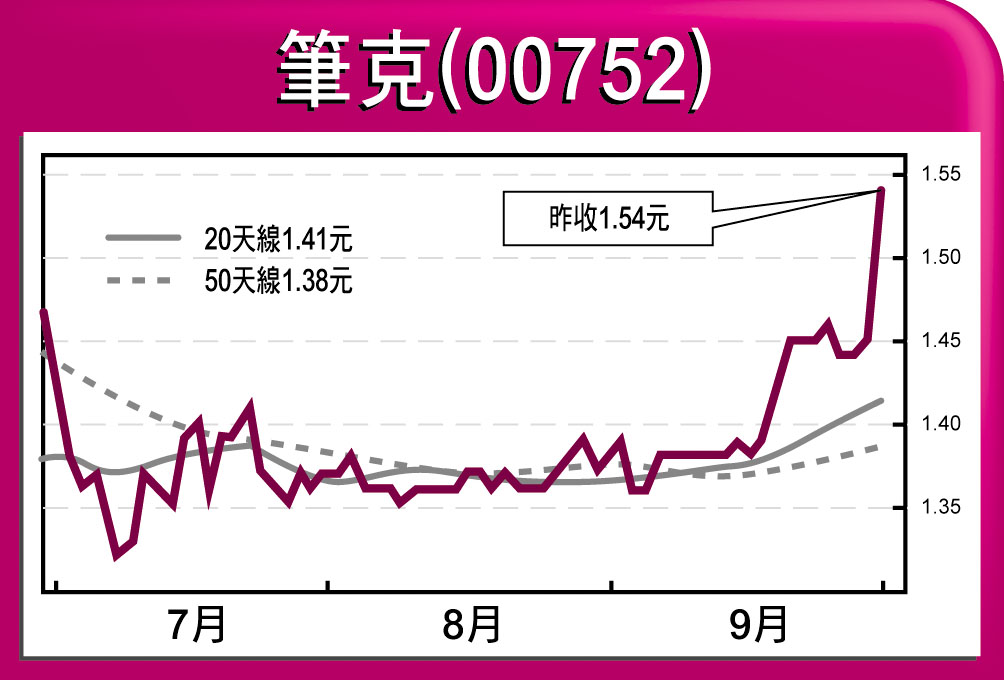 筆克把業務地區轉移已取得顯著成果,加上今年為雙數年,是傳統展覽會及大型活動的旺季,相信其業績將有突飛猛進表現,加上集團過往派息慷慨,最近3年派息比率平均逾50%,去年更達58%,今年業績若如預期有理想表現,派息額將有顯著增長,對其股價勢有提振作用,往績市盈率約14倍,周息率逾4厘,1.5元樓下仍值得收集,中線目標價2元。