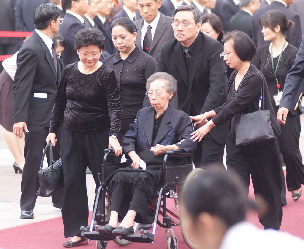 圖:王永慶家人日前終於繳清遺產稅。圖為二零零八年十一月王永慶的妻兒在哀戚中送王永慶最後一程。資料圖片
