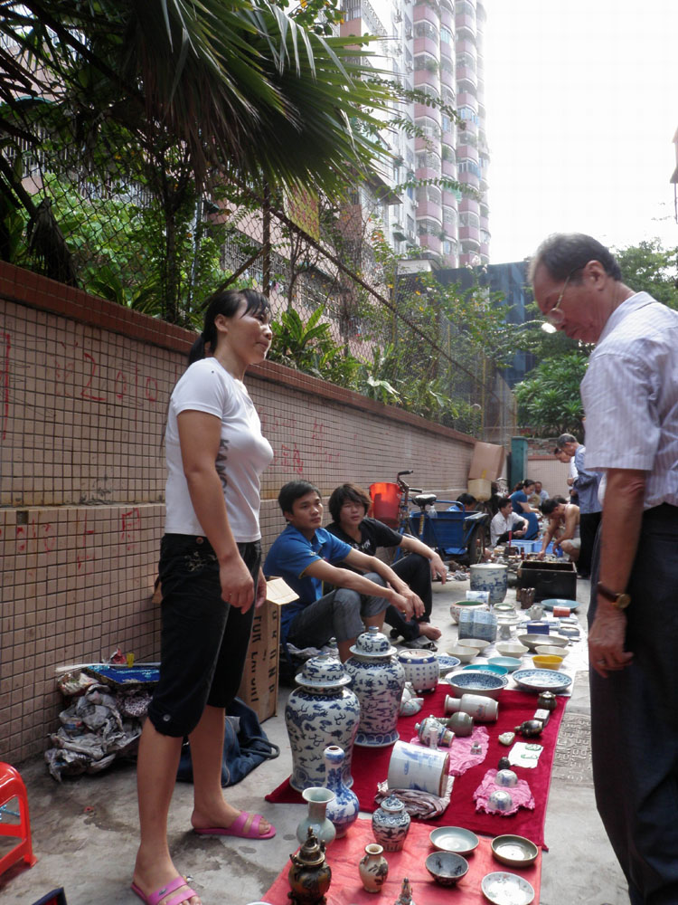 據悉,中國的文物市場分為三級,最低的一級是古玩店、古玩城、地攤和舊貨市場,記者曾聽說在這些地方「流嘢」佔了99%。不過,這些民間收藏者一般不會說「天光墟」的東西是「真」是「假」,而是新舊定論;價格和來源,也是買家和賣家都不願多談的話題。