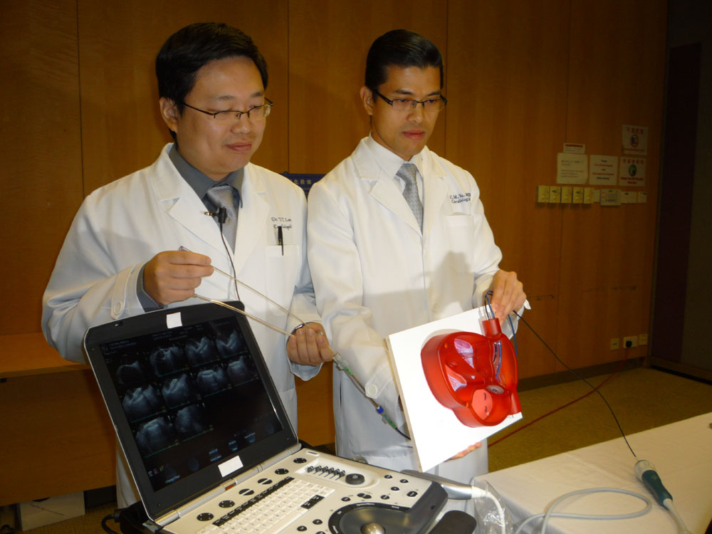 中大醫學院於○五年初,率先為病人診斷時引入「實時三維食喉超聲波」新技術,從病人的食喉插入新式超聲波導管,從四面攝取心房圖像,合成為俯瞰映像,取得更豐富的心房缺孔資料。中大醫學院內科及藥物治療學系副教授林逸賢說,舊的食喉超聲波只能攝取心房單面,醫生較難判斷可否做微創手術,因而建議病人做開胸手術。
