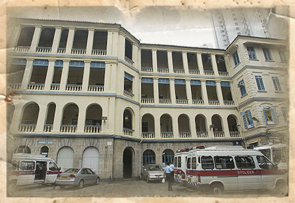 圖:昔日中區警署的停車場及主建築(資料圖片)
