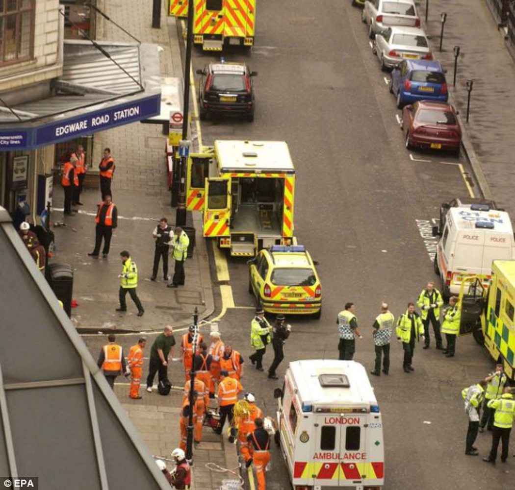圖:2005年7月7日,警方和醫護人員在遇襲的埃德格韋爾路站外展開救援工作\資料圖片
