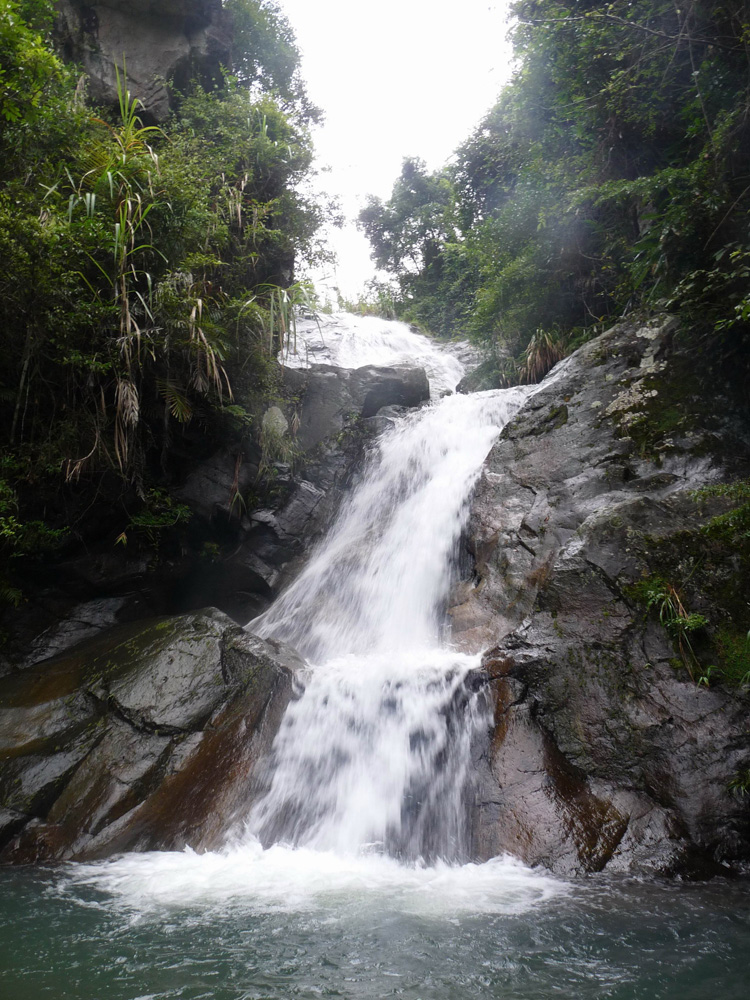 發現瀑布群的山澗位於永春縣湖洋鎮蓬萊村,山澗全長約6公里,山澗裡分布着八座大小不一的瀑布,其中最長的一條瀑布高20米左右。該山澗山勢雄偉,峭壁嶙峋,谷深水急,怪石崢嶸,林木參天,蕨苔繁茂,蔓藤密懸,形成了森林、流泉、水潭、瀑布相互襯映的美景。