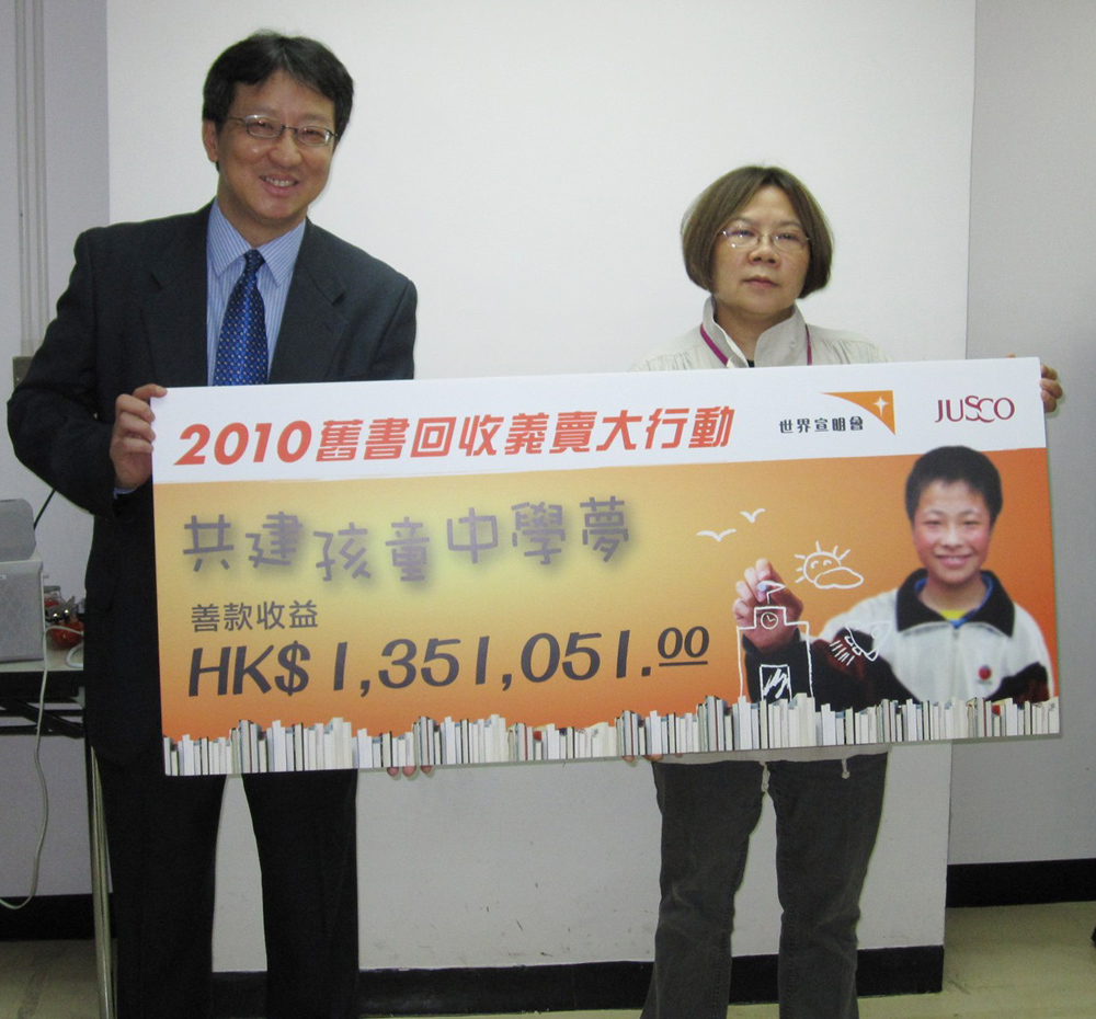 香港世界宣明會的「舊書回收義賣大行動」,自1992年開始,共累積回收超過300萬本舊書,籌得超過2000萬元,以支持宣明會在中國推行扶貧發展項目。今年的活動由香港世界宣明會及永旺(香港)百貨有限公司攜手主辦,並獲香港電台第一台全力支持。