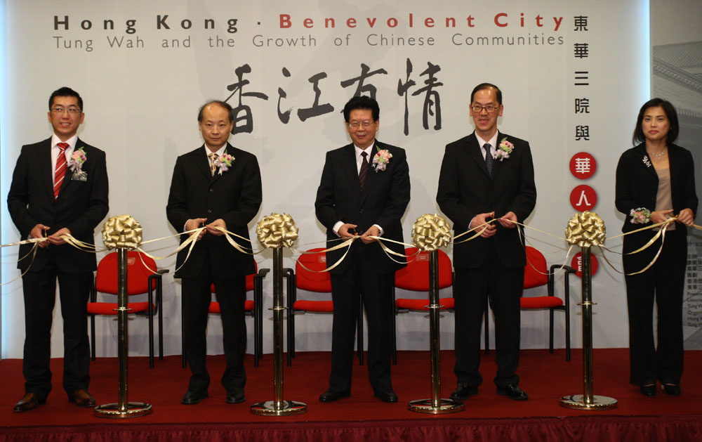 開幕儀式於昨午六時開始,主禮嘉賓有全國政協常務委員暨文史和學習委員會主任陳福今、外交部駐港特派員公署副特派員詹永新、民政事務局局長曾德成、香港東華三院董事局主席梁定宇、康樂及文化事務署署長馮程淑儀。在傳媒預展上,東華三院檔案及歷史文化總主任史秀英,以及歷史博物館館長(展覽及研究)林國輝介紹了展覽內容。