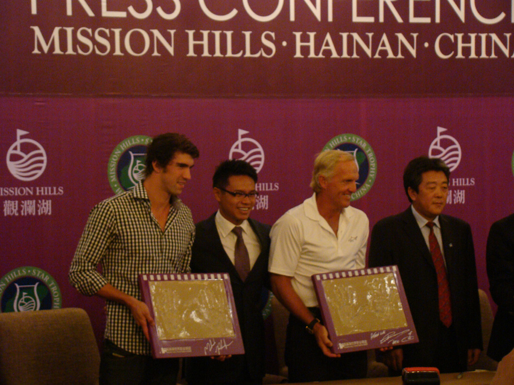 北京奧運8金王,「飛魚」菲比斯自稱是高球新手,提前兩天到海口熟悉場地,他笑言,海口的比賽場地比美國的難度大,再次來到中國他很興奮,希望打出北京奧運會的好成績。