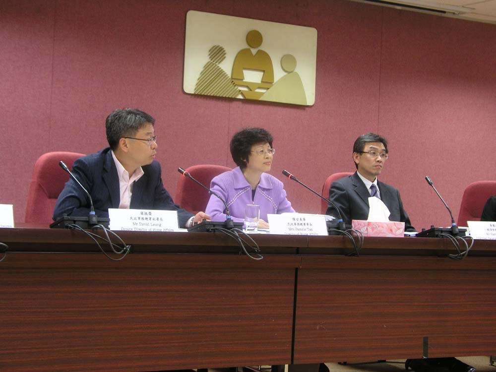 圖:陳甘美華(中)表示,當局將為未買保險的法團提供一籃子協助\本報攝