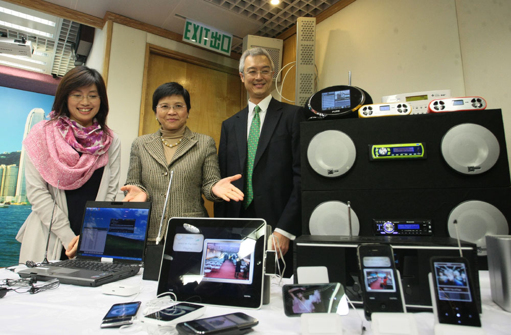 政府今年二月就數碼聲音廣播牌照進行招標,最後收到三份申請,分別是新城電台、鳳凰優悅和雄濤廣播,並於七月展開公眾諮詢,廣管局其後根據《電訊條例》評核申請。商務及經濟發展局局長劉吳惠蘭昨日宣布,行政長官會同行政會議,已原則上批准三間機構數碼聲音廣播牌照的申請。她表示,今次決定令本港數碼聲音廣播的發展,跨進了重要一步。她說,相對於現時AM/FM廣播,數碼廣播更具穩定性,音質較佳,大幅減少雜音,並且可提供例如歌詞、節目內容、甚至圖片等額外資訊,令市民有更多電台節目的選擇,相信可促進聲音廣播市場的競爭。