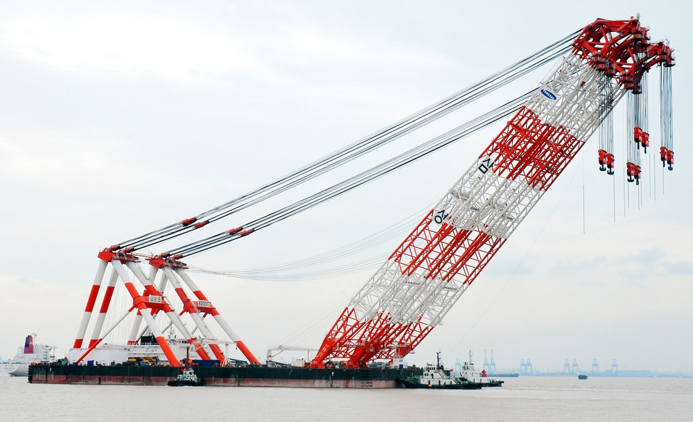 早在08年5月上旬,振華重工就曾向中海油工程公司交付一艘自主研製的世界起重量最大的「藍鯨號」7500噸「單臂架全回轉自航浮式起重船」,用於油氣田開採過程中安裝、拆卸導管架和平台模塊,引起海內外船舶界廣泛關注。