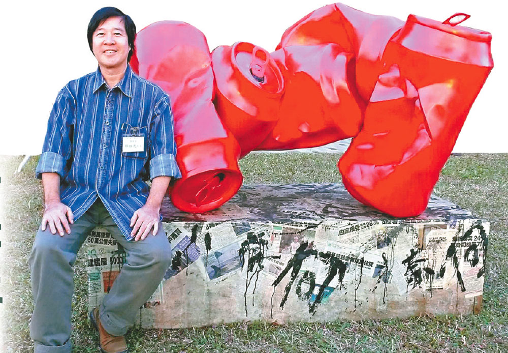 蔡祖光說:「我們這些中年人到某個程度,被認為失去利用價值而被拋棄。這些汽水罐,可以循環再造,代表我們再度站起來,提升價值,組合再創造。」