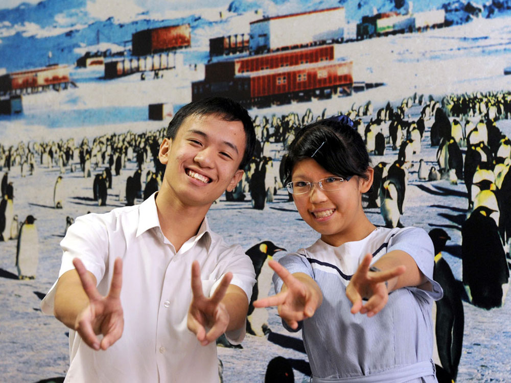 圖:中學生胡應標(左)和潘莉翎(右)將出發到南極考察,與科學家交流