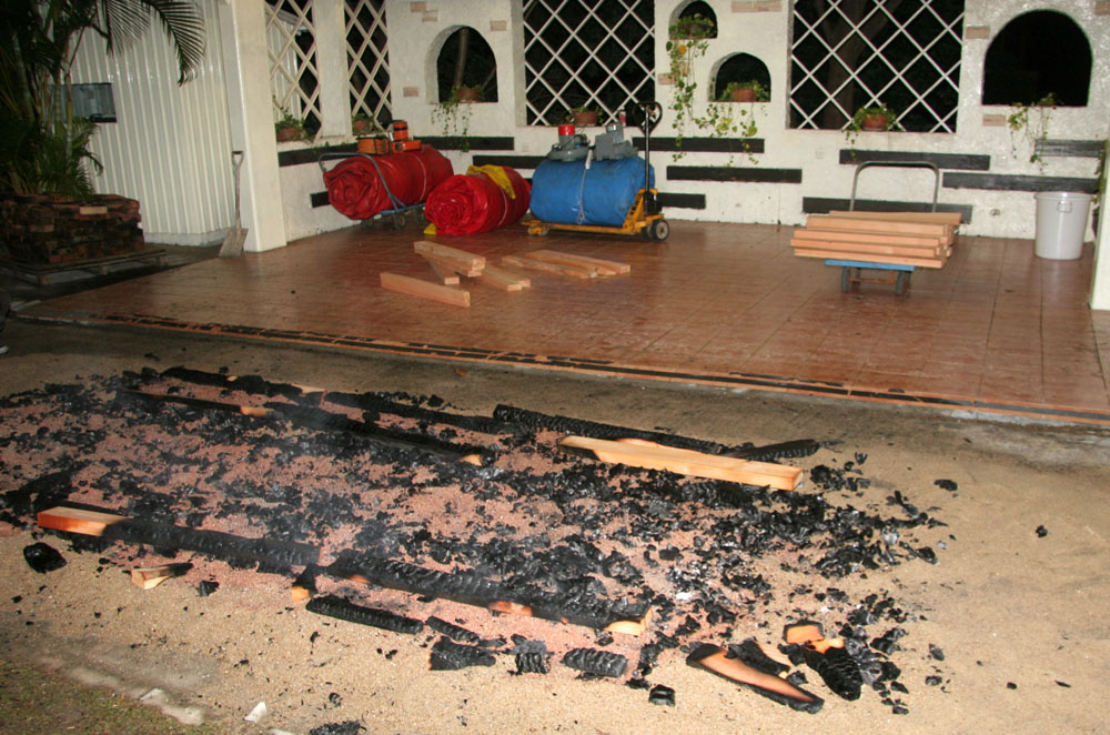 約晚上七時許,眾人先後走完炭路,起初還以為成功過關心情雀躍,但陸續有人感到腳板劇痛難當,部分更嚴重起了水泡,駐場醫生立即上前查看,認為已傷及皮膚情況不妙,需要報警送院。多輛救護車到場,將六男五女傷者送往那打素醫院治理,有同類踩炭活動舉辦經驗的業內人士稱,該些木方燃燒時溫度達攝氏一千度,讓人行走的炭路,溫度仍可高達攝氏一百五十度,若以正常步速走過仍安全,但如腳踏炭面不郁動,或者步速較慢,便會燒至起水泡。