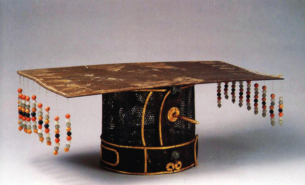 據《明史》記載,明天子戴的冕前後分別垂着12道旒,每道旒上有紅黃青白黑共12顆玉珠,太子用11旒、11珠,親王只能用9旒、9珠。魯王這件九旒冕前後分別垂着9道旒,每道上9顆五彩玉珠,共用珠162顆。目前,作為文物的垂旒冕全國只有兩件,一件收藏於中國歷史博物館,是民國初年袁世凱登基稱帝時穿的一套仿古冕服中的冕冠;另一件就是現藏於山東省博物館的魯王600多年前的明初親王冕冠,因為袁世凱的冕冠為近代仿品,因此這件九旒冕堪稱舉世無雙。