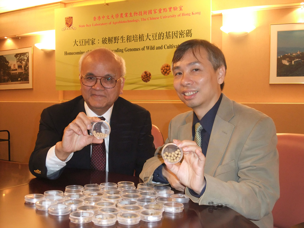 圖:由辛世文(左)與林漢明共同領導的「大豆回家」項目,在大豆基因組研究取得重大突破