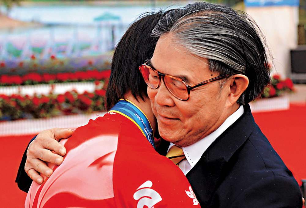 為男子公路個人賽任頒獎嘉賓的霍震霆,將金牌掛到「阿寶」頸項後與對方擁抱,頒獎儀式後又如慈父一樣擁抱「阿寶」,他表示這是最感動及開心的一面金牌:「因為我一直都見證他(黃金寶)的單車運動員生涯,大家都知道這些成就來得不易,我多次見證他獲得殊榮,但他已跟我說這次可能是他最後1次拿獎牌,我認為這樣意義會更大。最難得的不只是拿到獎牌,更重要是帶起社會對運動員背後故事的關注,希望更多市民支持他們,繼續去拿好成績。」