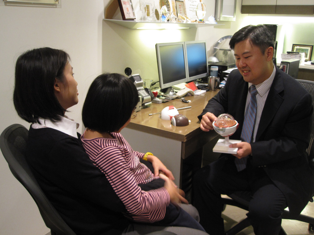 許太(化名)一直覺得三歲半女兒視力沒有問題,「即使一粒飯跌落地上也能拾回」,但於○六年的視力檢查時,發現右眼視力良好,左眼卻僅餘一成視力,有深至七百度的遠視及一百度散光。許太女兒隨後佩戴矯視眼鏡,並每日接受三小時的遮眼治療。兩個月後,她左眼視力提升至三成;五個月後更回復至六成。○八年,她左眼視力已恢復至八成,並重新回復立體感及距離感;去年,她的遠視亦由最初的七百度下降至六百度,毋須再進行遮眼治療。