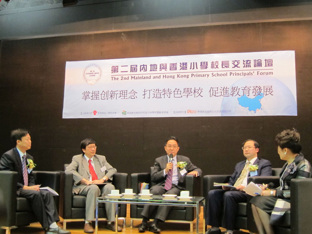 昨日出席論壇的包括中聯辦教科部副部長董翠娣、本港資助小學校長會主席梁兆棠、教院副校長李子建和鄭燕祥。