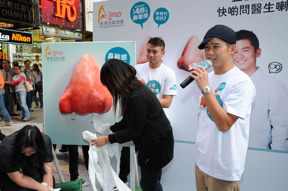 林海峰最近成為鼻敏感噴劑的廣告代言人,昨日聯同鼻科醫生在銅鑼灣鬧市舉行宣傳活動,不過大會安排了兩位女途人玩鬥快拔廁紙的遊戲,有欠環保。幽默的林海峰自言鼻子一向沒問題,豈料兩周前答應接拍廣告後,鼻子開始不適,弄得說話也會牙痛,身體如像配合工作似的,而剛向醫生請教過,懷疑是鼻竇炎,雖現已在康復中,但過兩天也會看看醫生以策安全,又指其實沒什麼,因為香港很多人也有鼻敏感。提到其太太彭羚也有耳水不平衡,夫婦二人在耳鼻方面似乎較弱,他說沒有人是完美的,每個人的身體都難免有些問題。