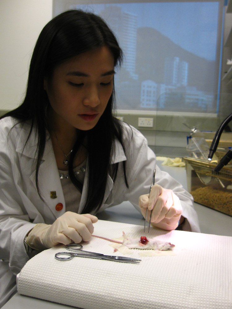 圖:彭詠枝將肝癌幹細胞中不同分子進行分離及培植,並種在老鼠體內實驗\本報攝