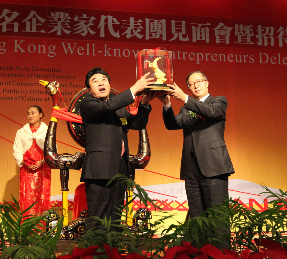 圖:湖北省長李鴻忠與港考察團團長高敬德互換禮物李曉波攝