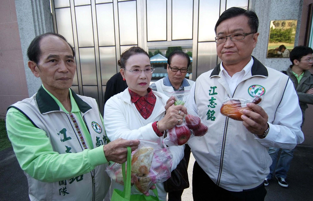 江志銘一行還依獄方規定菜色攜帶食物給阿扁吃,包括雞腿、煎魚、荷包蛋、花椰菜及蘋果、棗子、蓮霧等水果。高瓊月表示,陳水扁在台北看守所時,她每天煮菜給陳水扁吃;至於蘋果是寓意平安、棗子是希望早日歸來。