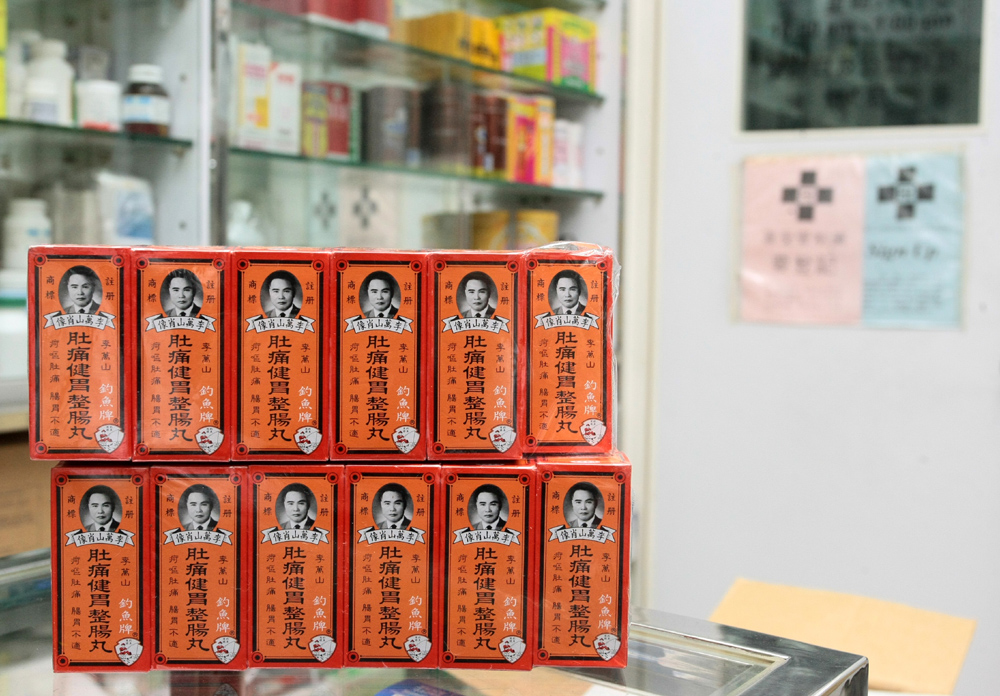 圖:北角寶山大藥房收起需下架的釣魚牌李萬山肚痛健胃整腸丸\本報攝