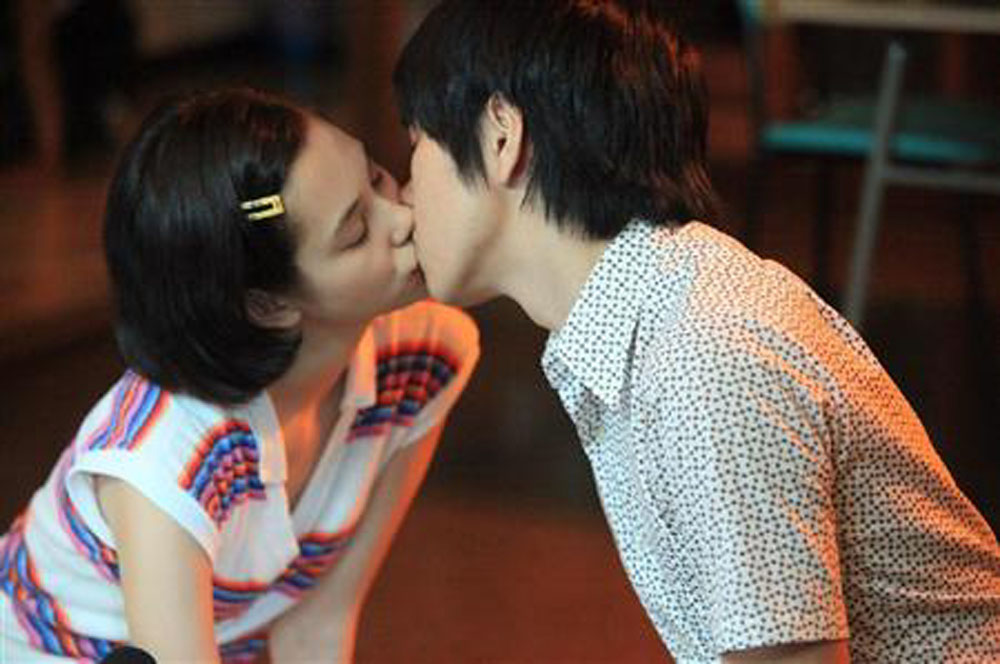 圖:松山研一(右)與水原希子在戲中的接吻戲,成為廣告的宣傳片段