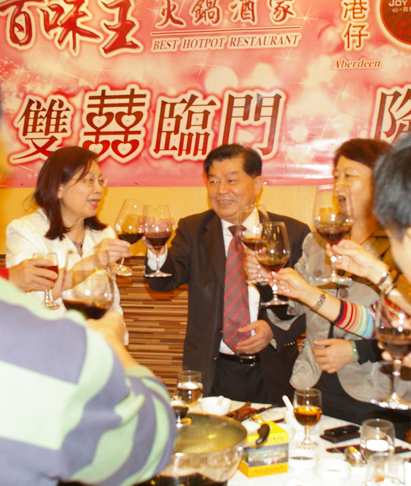 圖:李國雄(中)、梁鳳儀(右)等舉杯祝酒\本報攝