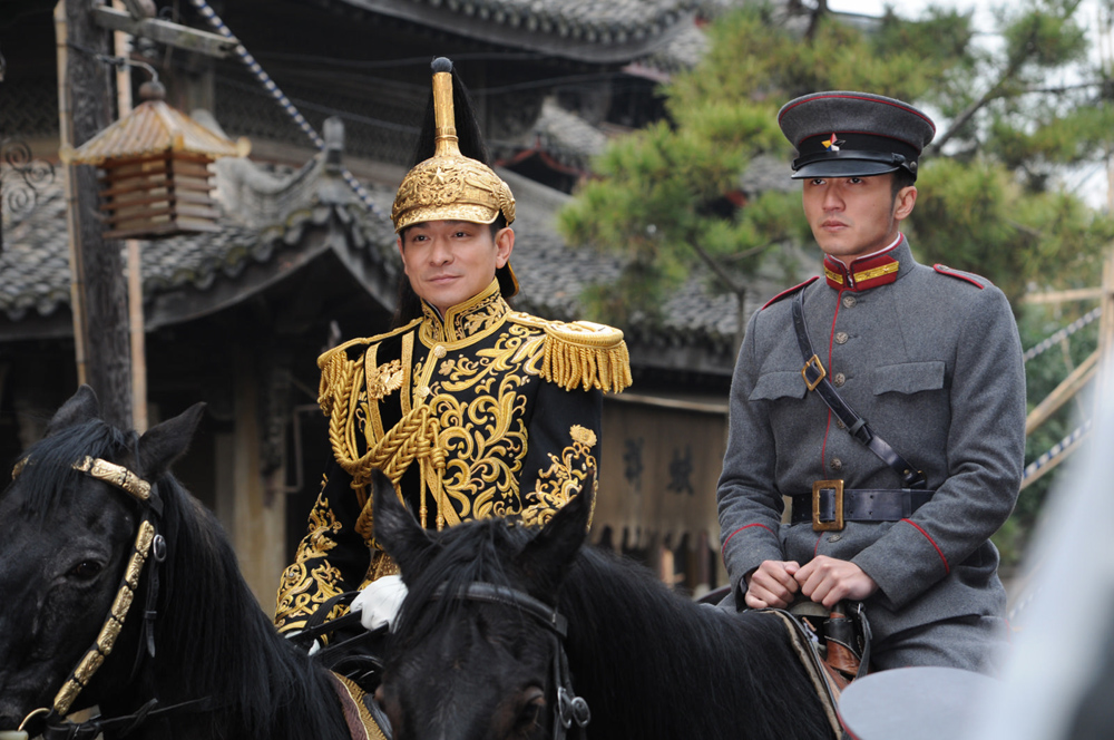 圖:劉德華(左)以金裝將軍look,與霆鋒威風凜凜地入城
