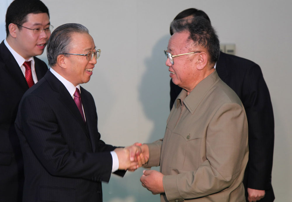 圖:朝鮮勞動黨總書記、國防委員會委員長金正日(右)九日在平壤會見了中國國務委員戴秉國(左)\新華社