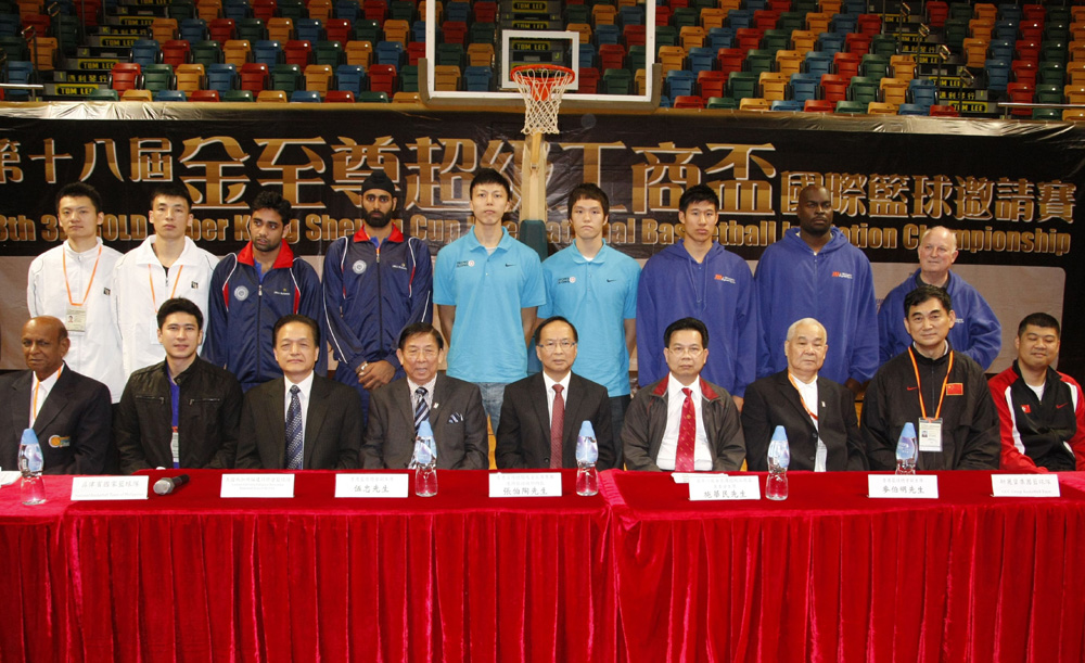 圖:賽事籌委會主席施華民(前排右四)、香港資源控股及金至尊集團港澳區行政部總監張伯陶(前排右五)與港隊領隊林植昌(前排右一)等球隊代表合照\本報攝