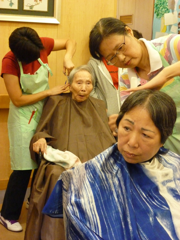 最近一次去安老院外展服務,合共5名義工的小團隊,一口氣為53人剪了髮,數目和效率都不遜於髮型屋。不過,沒做過一天髮型屋的秀娟,從來不敢以專業自居,她形容自己的技術,「過得去吧,總之不至於難看,哈哈。」