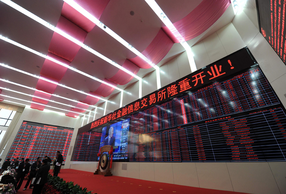 圖:由126塊42英寸LCD屏組成的交易屏幕不間斷顯示金融信息\新華社