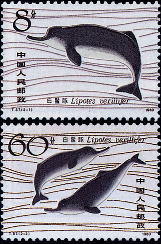 1980年12月15日,中國發行了一套二枚的「白鱀豚」郵票,編號T57。