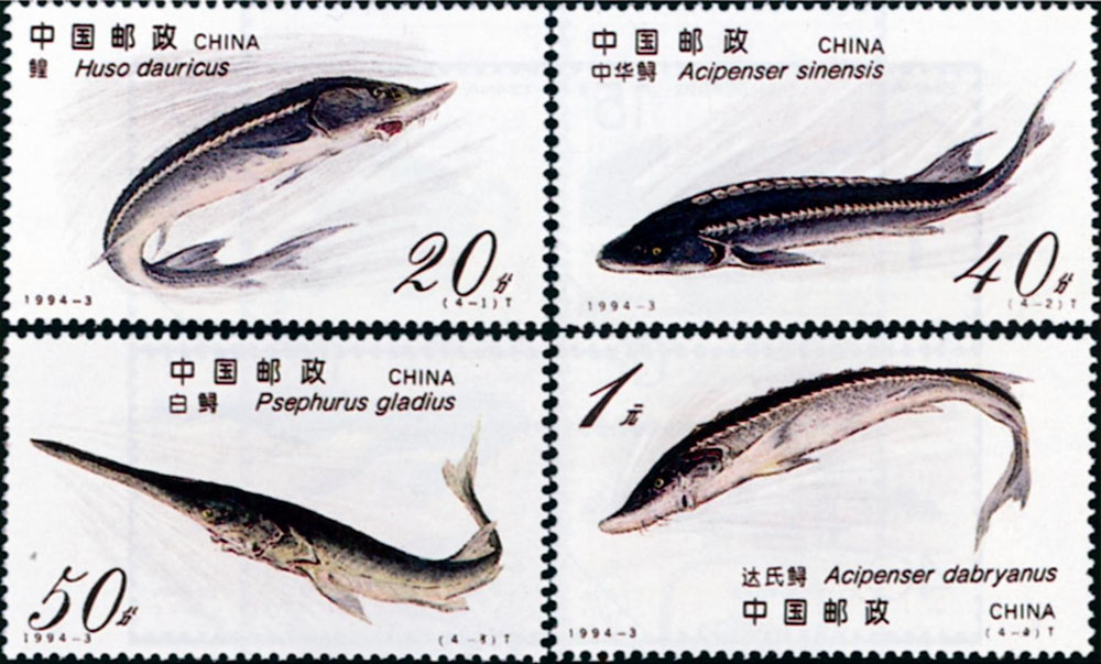 1994年3月18日,中國發行了一套四枚的鱘魚郵票,編號「1994─3」。