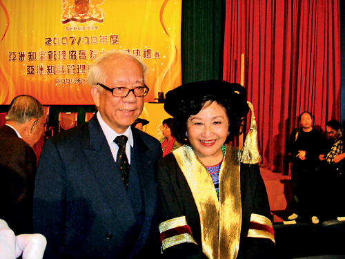 □零八年,對於邊陳之娟來說,可謂豐收年。她除了擔正做香港女童軍總會香港總監一姐外,還獲亞洲知識學會頒授院士。當日祝賀邊太的人眾多,美貌與智慧並重的她,得老公邊醫生輕輕一吻,幸福滿溢。